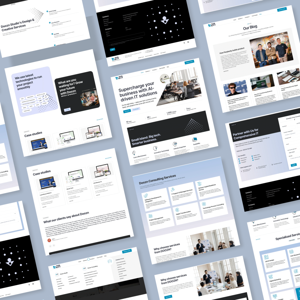 A landing page for Doozn Studio designed to showcase its creative SaaS offerings. It delivers a bold brand experience and smooth performance across all devices.